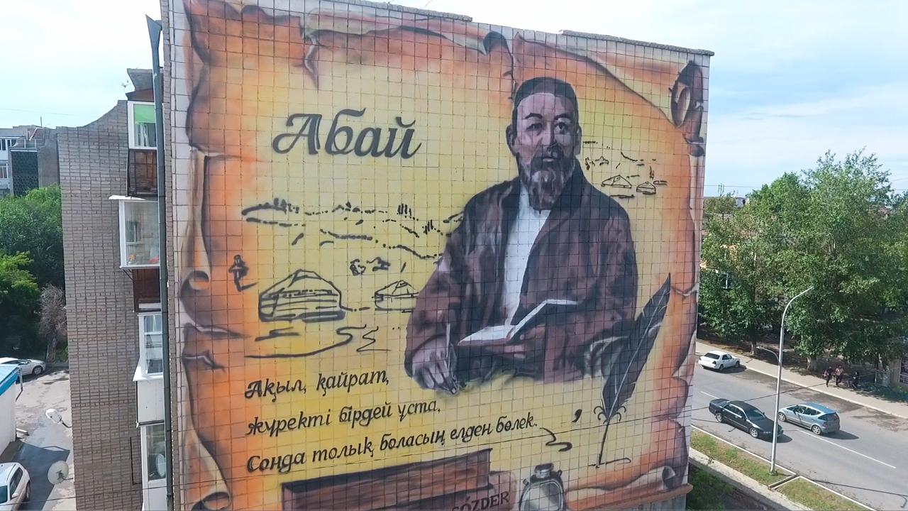 В Кокшетау на улице Абая находится стрит-арт рисунка с изображением поэта и мыслителя Абая. Данный арт проект приурочен к 175-летию Абая, чей юбилей сегодня празднует Казахстан. Поэт изображен на фоне казахской степи, олицетворяющую его величие. Сам Абай держит в руке книгу и перо, его взгляд, направленный вдаль, демонстрирует гордость за казахский народ. На рисунке выбита строки из стихотворения самого поэта «Әуелде бір суық мұз – ақыл зерек» – «Ақыл, қайрат, жүректі бірдей ұста. Сонда толық боласың елден бөлек». Портрет основоположника казахской письменной литературы выполнен командой местной компании “Design city”.  Автором эскиза является художник-дизайнер Камиля Абишева, непосредственно воплотил проект граффитист Ернур Сарсекеев.