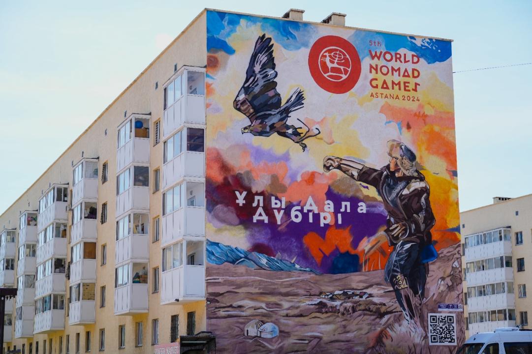 Мурал находится по улице Бейбарыс Султан, посвящен Всемирным играм кочевников, которые проходили в 2024 году. Высота мурала составляет 16 метров. На нем изображен беркутчи –мужчина, выпускающий беркута в небо, что символизирует начало Игр. Фон картины представляет собой живописные земли кочевников, горы и юрты, олицетворяющие свободу кочевой жизни и богатую культурную традицию.