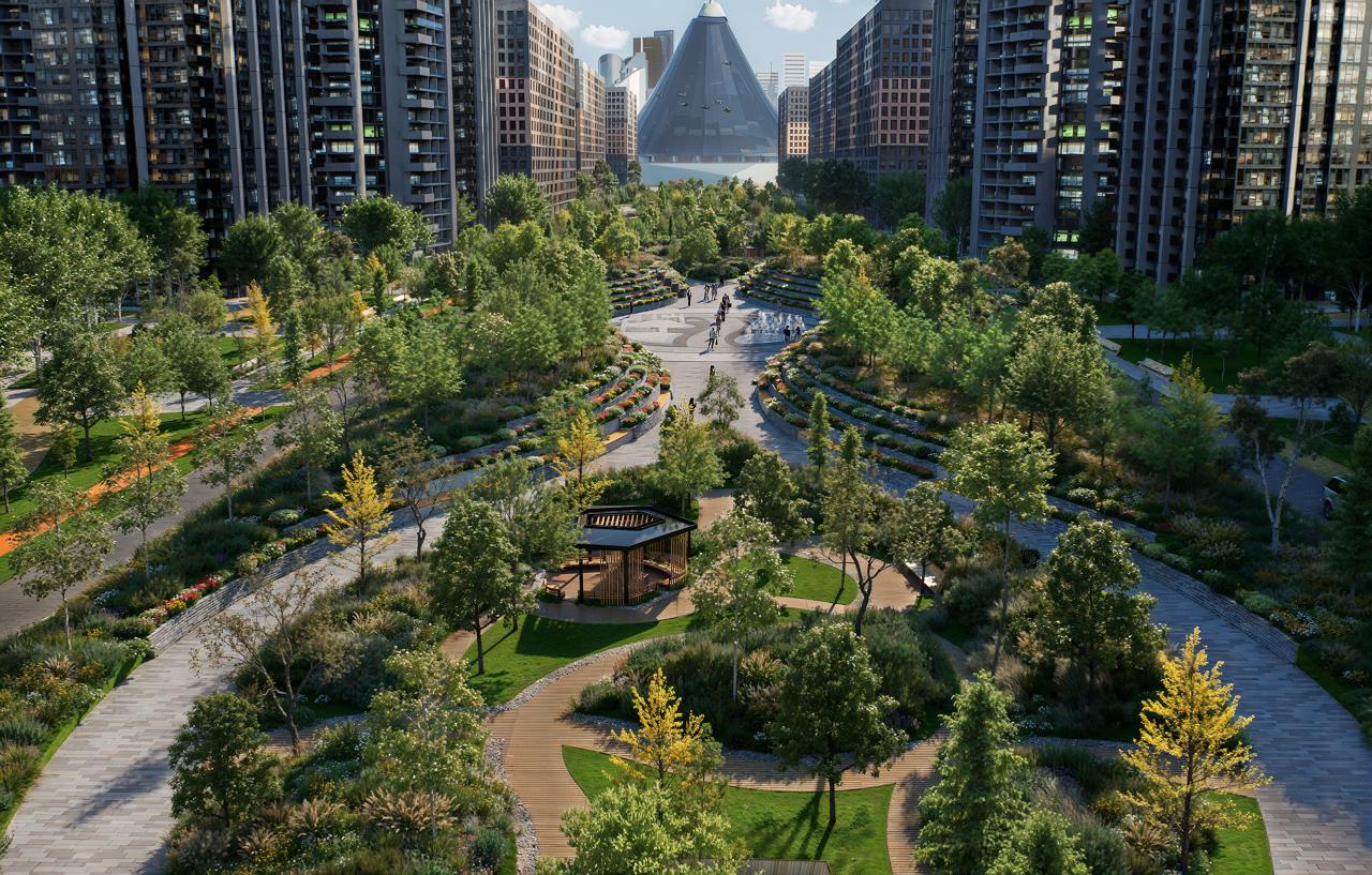 Основой концепции стало озеленение и формирование комфортной городской среды. Мы стремились создать пространство, где людям будет приятно находиться в любое время, с разнообразными функциональными зонами в шаговой доступности: велодорожки, беговые маршруты, места для отдыха, активности для детей.